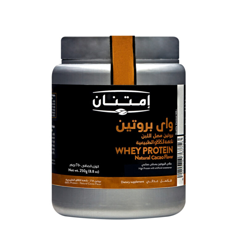 امتنان واي بروتين بنكهة الكاكاو هو مسحوق بروتين طبيعي 100%، غني بالبروتين عالي الجودة (68%)، خالٍ من الدهون، ويحتوي على